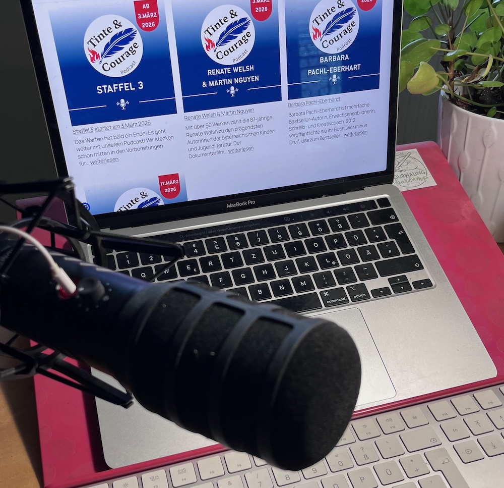 Am 1.4.2025 ging unser Podcast „Tinte & Courage“ das erste Mal online. Ich habe Claudia Scheidemann letztes Jahr im Jänner dazu überredet einen Podcast über persönliches Schreiben mit mir zu starten. Mittlerweile sind 24 Folgen produziert und am 3.3. ist die 3.Staffel gestartet. Für diese Folge durften wir mit der österreichischen Autorin Renate Welsh und dem Dokumentarfilmer Martin Nguyen aufnehmen. Wie sind wir dazu gekommen?